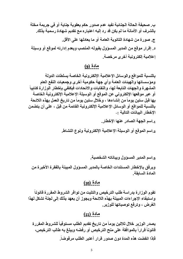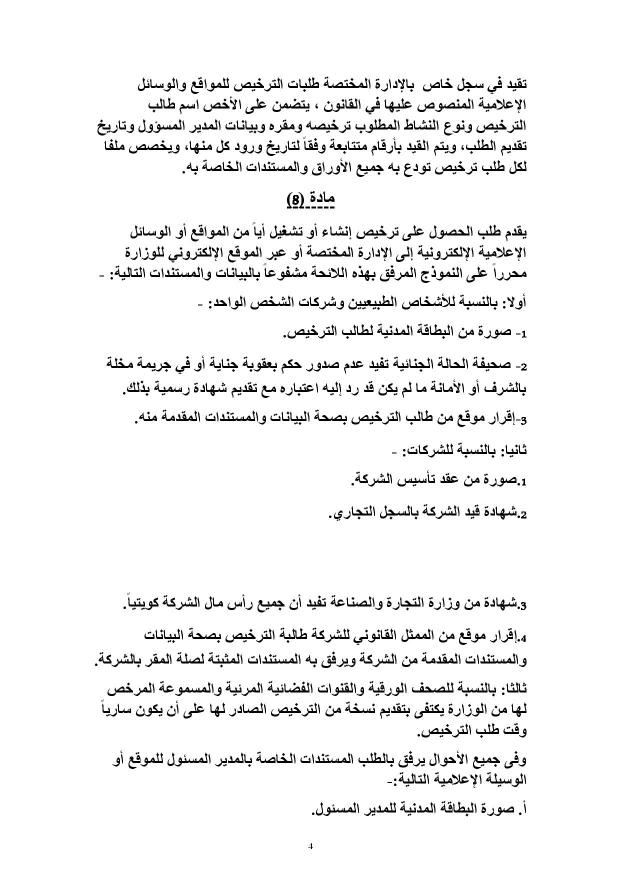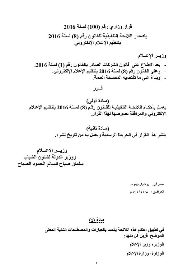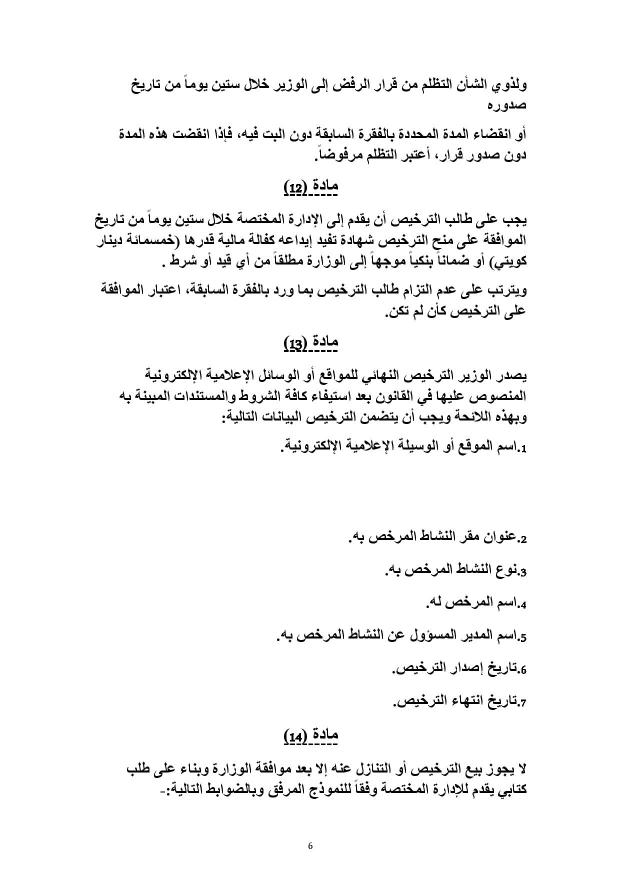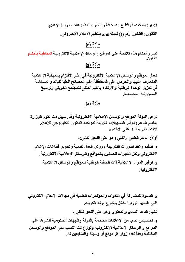 اللائحة التنفيذية لـ«الإعلام الإلكتروني الكويتي» رسمياً.. تفعيلا للقانون نشرت بواسطة: مجلة فن ون في علوم وتكنولوجيا 2016-07-247:32 م 0 30,716 زيارة وزارة الاعلام : بدء تطبيق قانون الإعلام الإلكتروني اليوم نشرت الجريدة الرسمية «الكويت اليوم»، اليوم الأحد، اللائحة التنفيذية لقانون تنظيم الإعلام الإلكتروني، وهو القانون رقم 8 لسنة 2016. 1 2 3 4 5 6 7 8 2016-07-24 مجلة فن ون